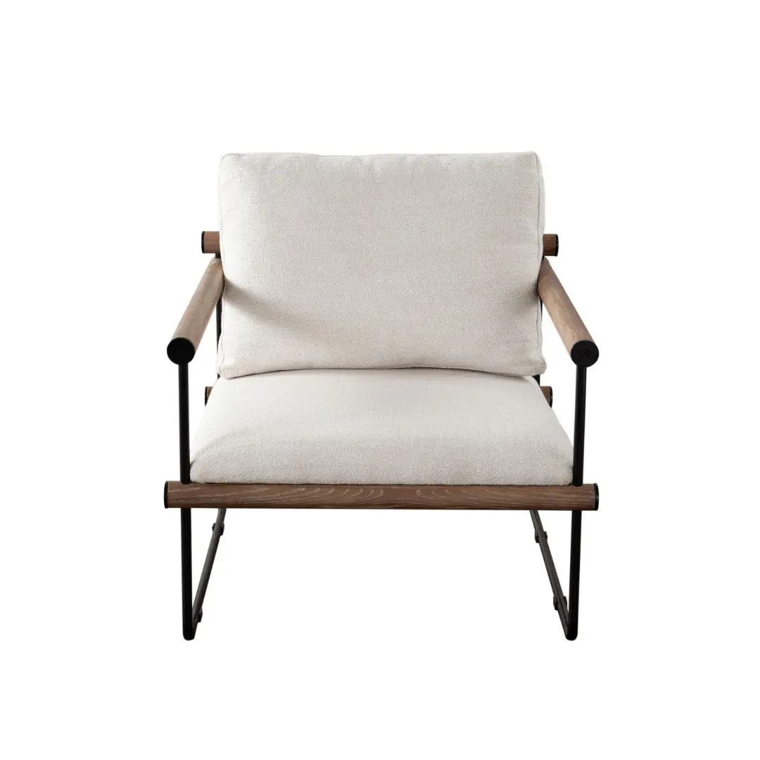 Elevate your living area with the Liam Cream Accent Chair, a harmonious blend of modern design and cozy comfort. Crafted with a durable metal frame and rich wood accents, this accent chair offers both elegance and stability. The soft cream polyester fabric invites relaxation while seamlessly complementing a variety of décor styles—from contemporary minimalism to chic modern interiors.