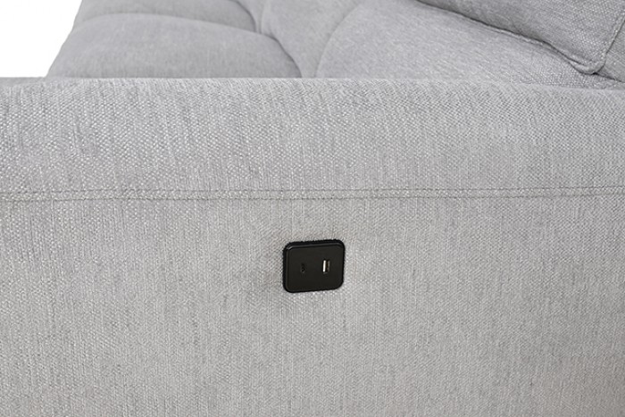 Brande Light Gray Chenille Power Sectional with Right Chaise CM9938LG-SECT-PM-R Modern Style by Furniture of America