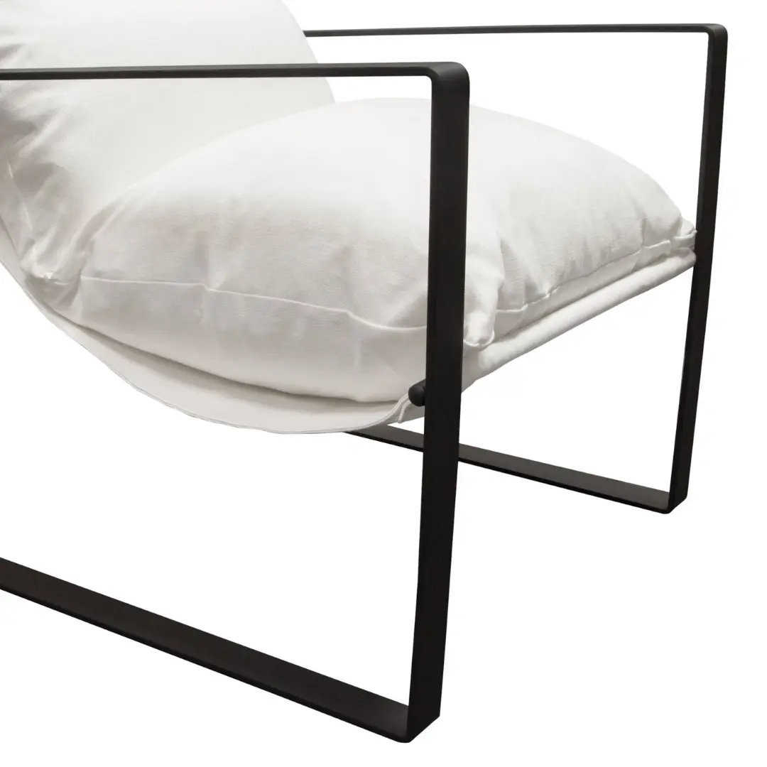 Enhance your living space with the Miller Accent Sling Chair, a stunning metal accent chair designed to combine style, comfort, and versatility. Its sleek black powder-coated metal frame creates a bold, modern silhouette, while the slung back design provides ergonomic support, making it the perfect spot to relax after a long day. Available in White Linen, Grey Fabric, or Chocolate Leather, this chair effortlessly complements contemporary and modern interiors alike.