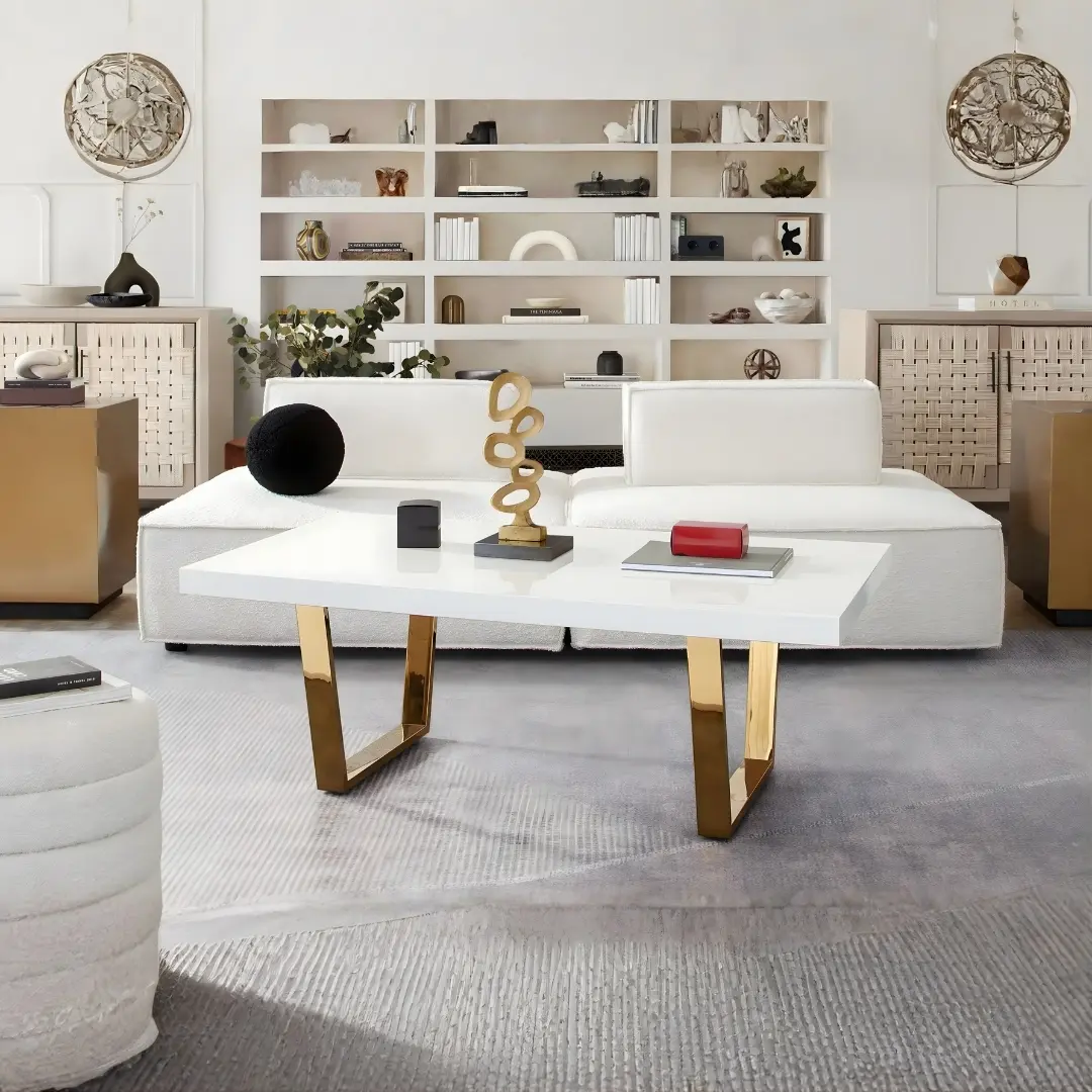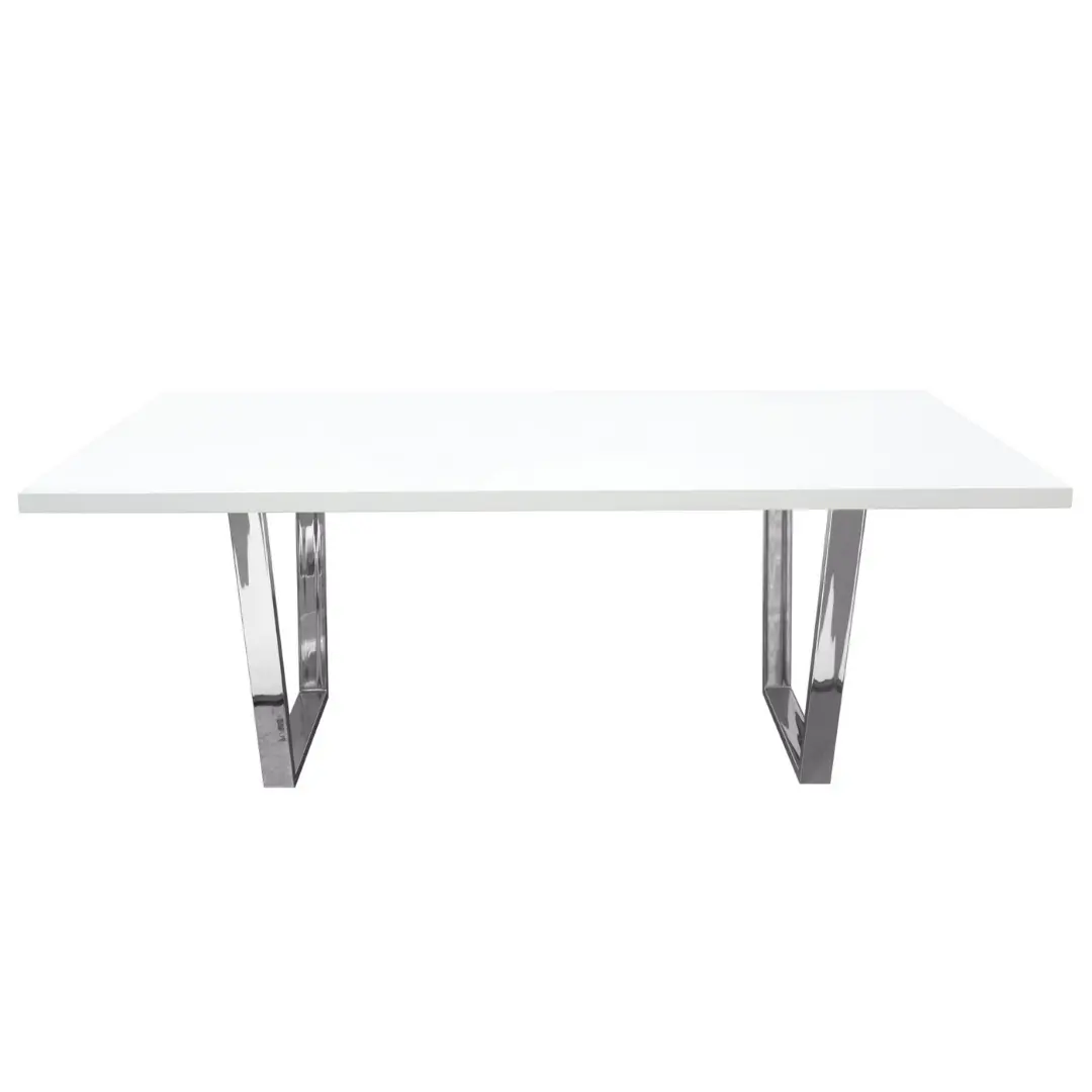 Designed to impress, the high-gloss white lacquer tabletop provides a clean, reflective surface that brightens your room while remaining easy to maintain. The polished metal base—available in Gold, Silver, or Black—adds a sophisticated contrast, creating a bold yet refined look suitable for any modern dining area.