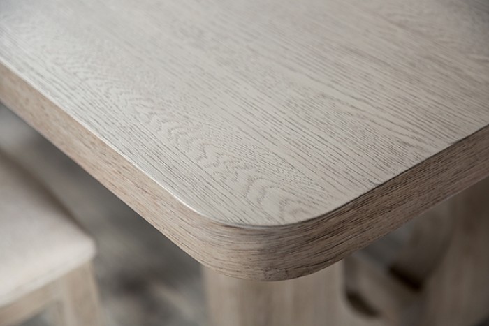 Combine it with coordinating dining chairs, server, or counter-height options within the Sterling West line. Each piece is crafted with similar materials and design cues—wire brushing, soft curves, and modern finishes—for a unified room aesthetic.