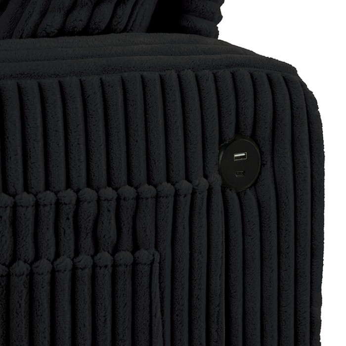 Moretaine Sofa – Contemporary Black Corduroy Sofa with USB Charging Ports and Cup Holders