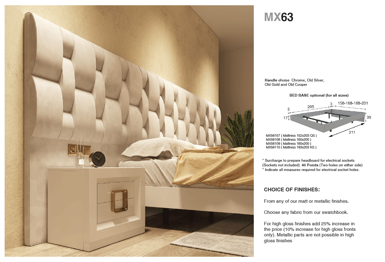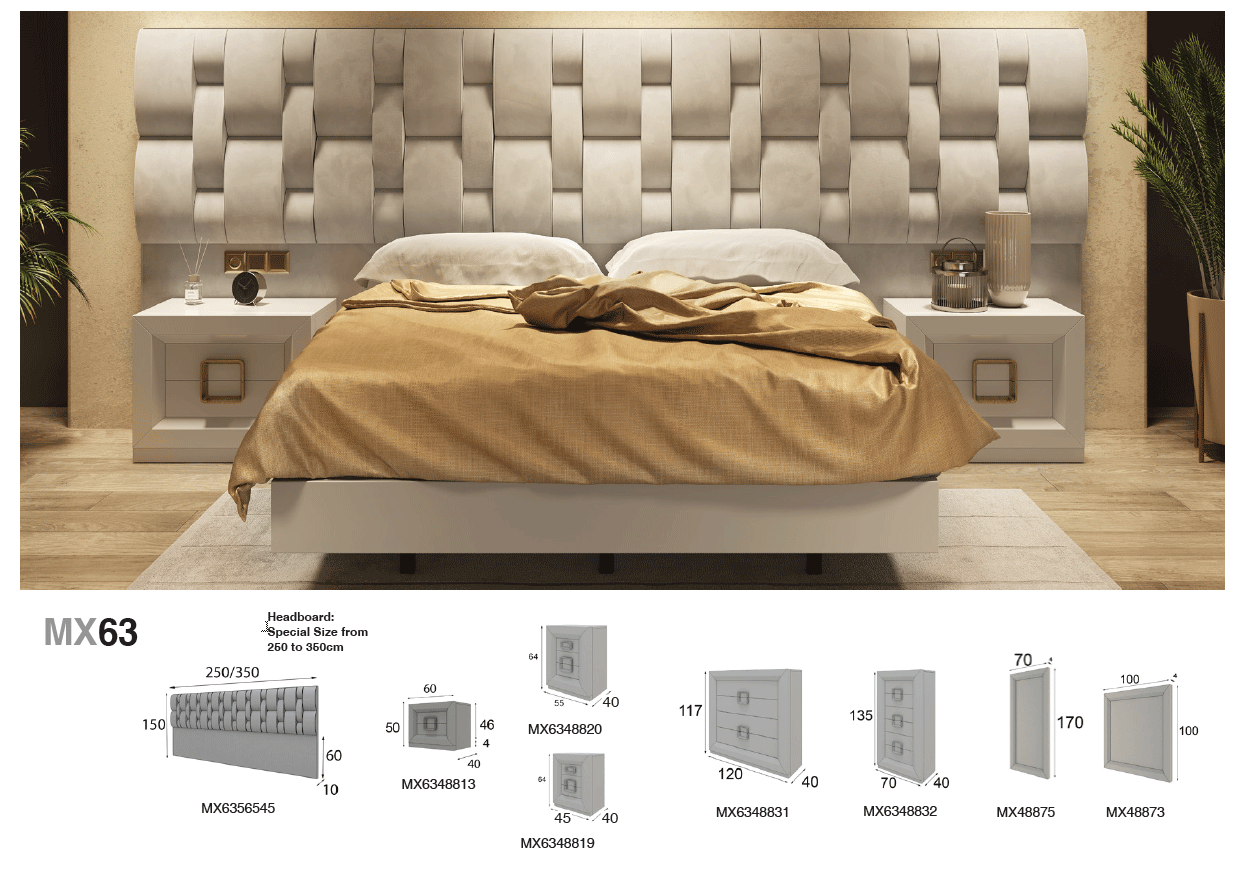 Unleash the luxurious feel with the MX63 White Velvet Bedroom Set today for the modern design and comfort you’ve been desiring. It is realized entirely in Spain, by skilled craftsmen: it transforms your bedroom into an elegant, luxurious and glamorous space that enriches your lifestyle.