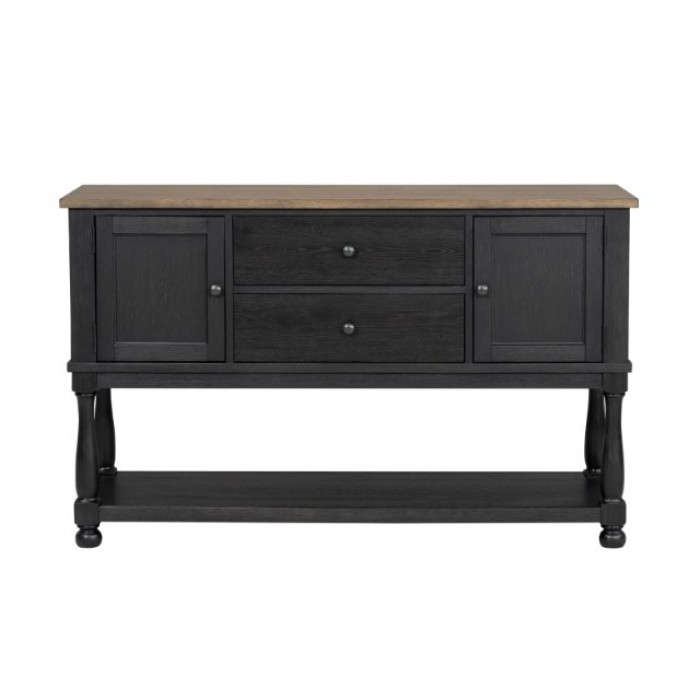 The Neue Mills Server combines modern farmhouse charm with practical functionality, offering both warmth and durability for your dining space. Designed with a two-tone black and rustic oak finish, this piece brings texture, balance, and timeless appeal to any modern home.