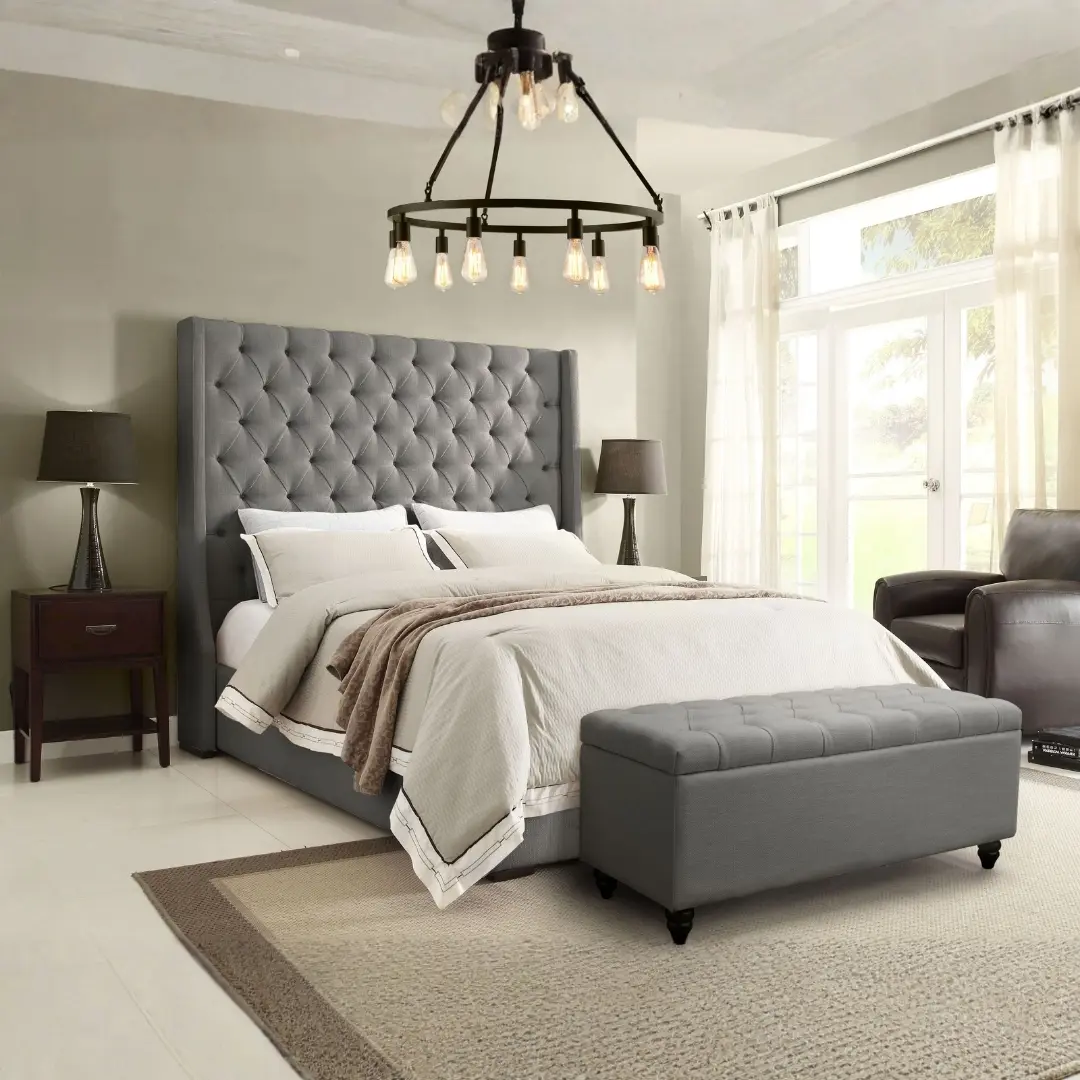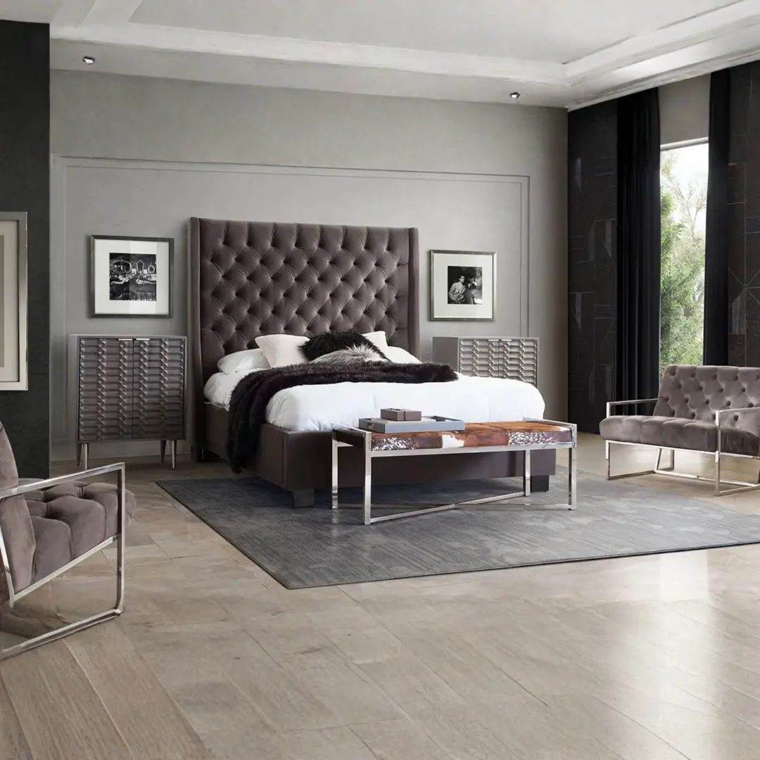 Elevate your bedroom with the timeless sophistication of the Park Ave upholstered bed by Diamond Sofa, a refined statement piece designed for comfort, durability, and visual impact. Among modern tufted beds, this design stands out with its tall hand-tufted headboard, elegant wingback sides, and luxurious upholstery options. Whether finished in soft smoke grey velvet or classic grey linen, the Park Ave bed delivers a sophisticated focal point that blends beautifully with contemporary and transitional bedroom interiors.