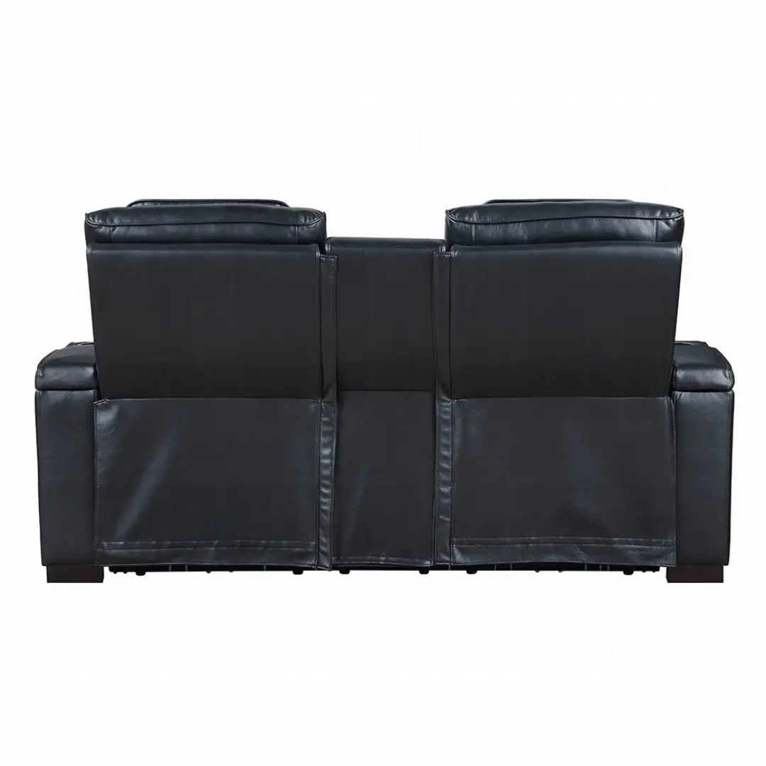 Ephron Black Leather Power Motion Recliner Loveseat with Console by ACME