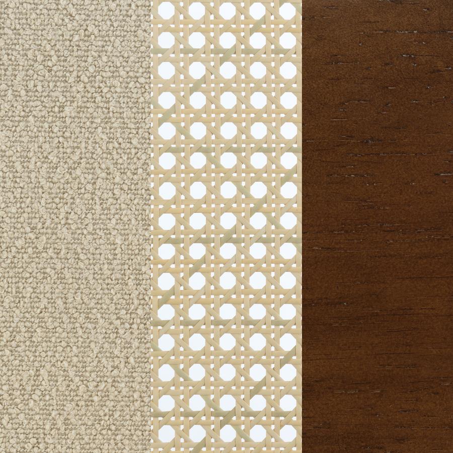 - Material: Rattan cane, fabric upholstery, solid hardwood