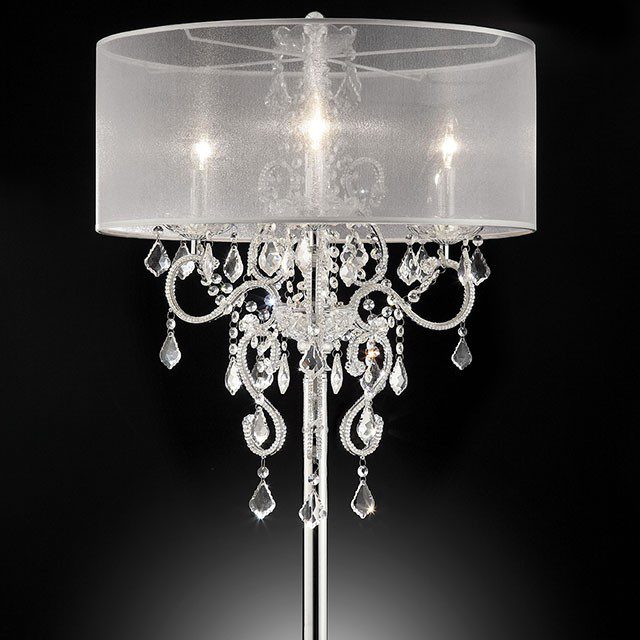 This table lamp can set the mood for a romantic dinner with its delicate lighting and swirling crystal encrusted frame.