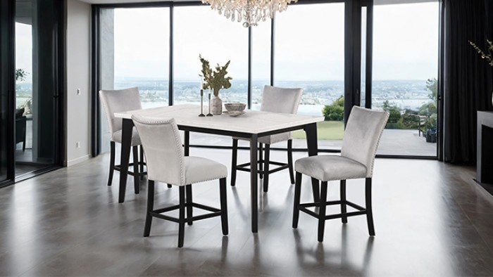 Redefine modern luxury with the Sabro Rect Counter Height Table (FM3330BK-PT-TABLE) by Furniture of America. This exquisite piece blends the timeless appeal of genuine marble with the strength of solid rubberwood, creating a dining centerpiece that exudes sophistication and durability.