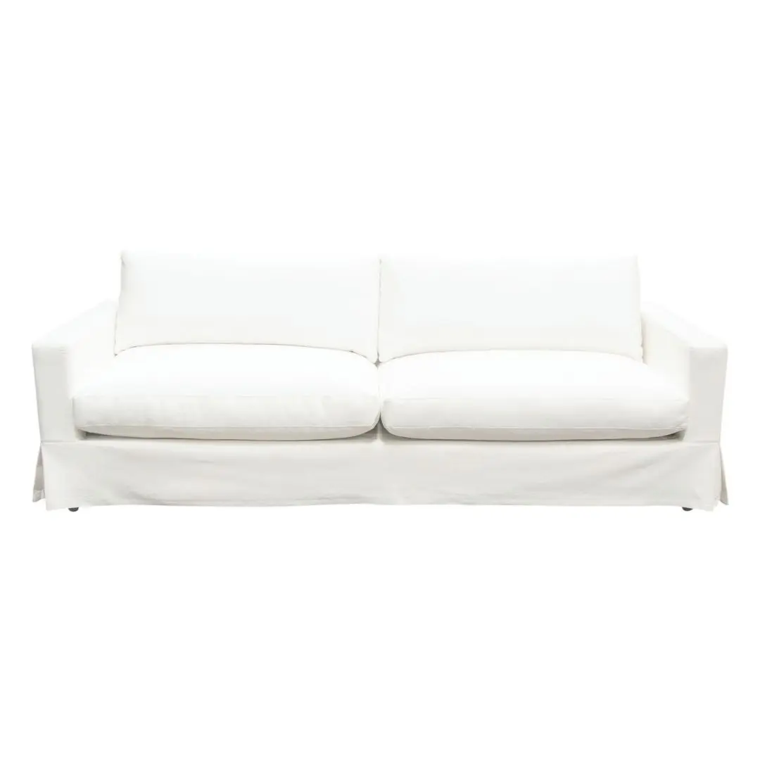 Elevate your living space with the Seattle Loose Back Loveseat in White Linen. Designed for modern elegance and daily comfort, this loveseat combines luxurious white linen upholstery with polished silver metal legs, creating a sophisticated centerpiece for any home. Perfect for contemporary apartments, cozy living rooms, or stylish offices, this loveseat blends comfort and style effortlessly.
