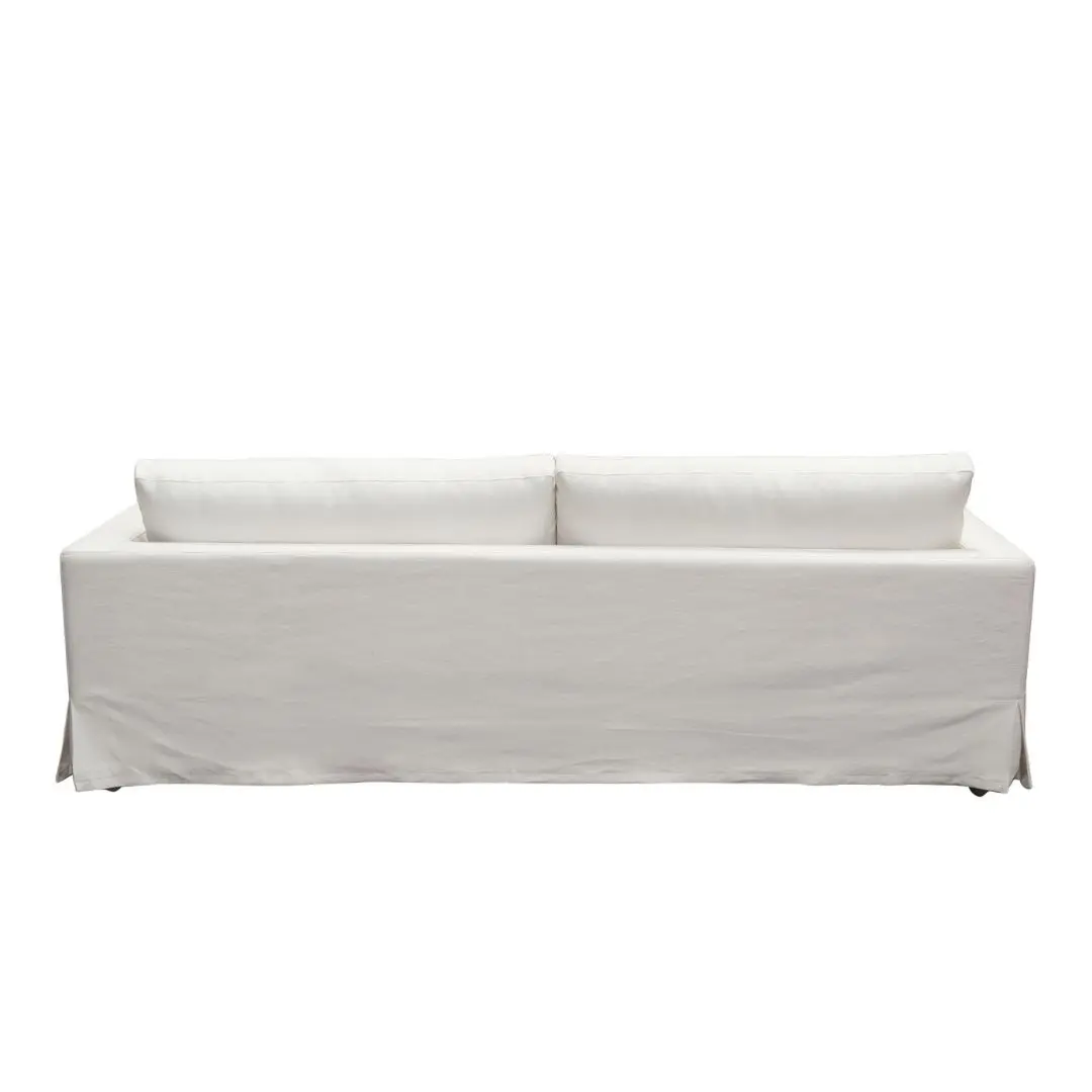 Durable white linen fabric is soft to the touch and easy to maintain.