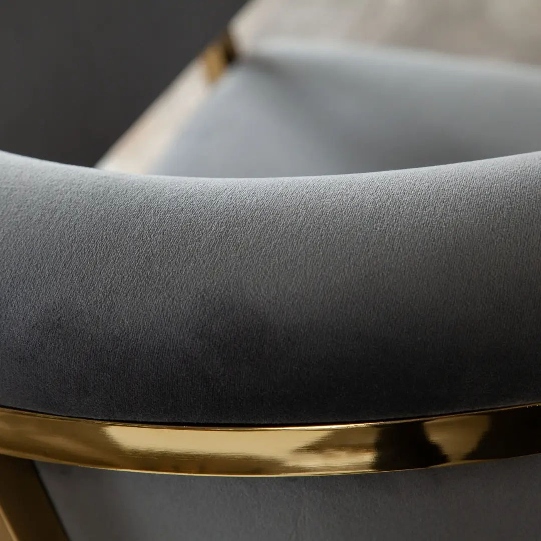 Whether you’re hosting a dinner party or enjoying a casual breakfast at your counter, the Solstice Counter Top High Chair complements contemporary, modern, or transitional interiors. Its grey velvet hue pairs effortlessly with both light and dark décor tones, while the polished gold frame injects a touch of glamour into your space.