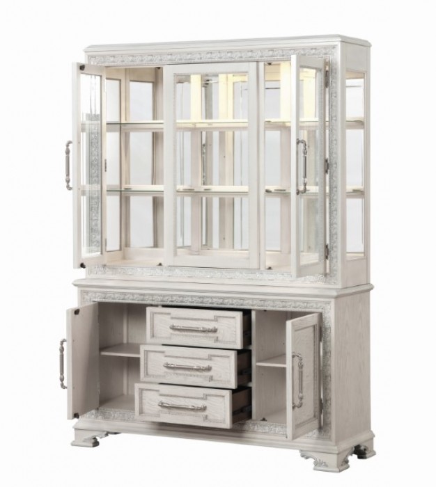 Stella Mia Traditional Ivory Dining Storage with Mirrored Hutch By Furniture of America
