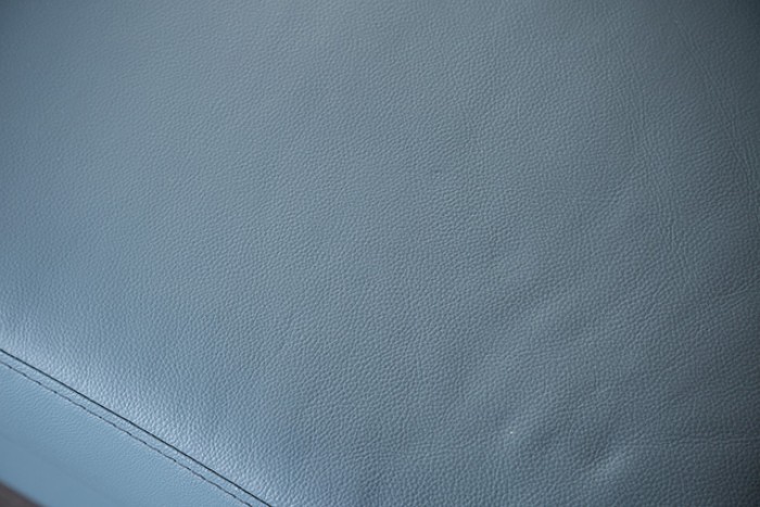 Sleek Modern Design – Blue leather match with contemporary track arms.