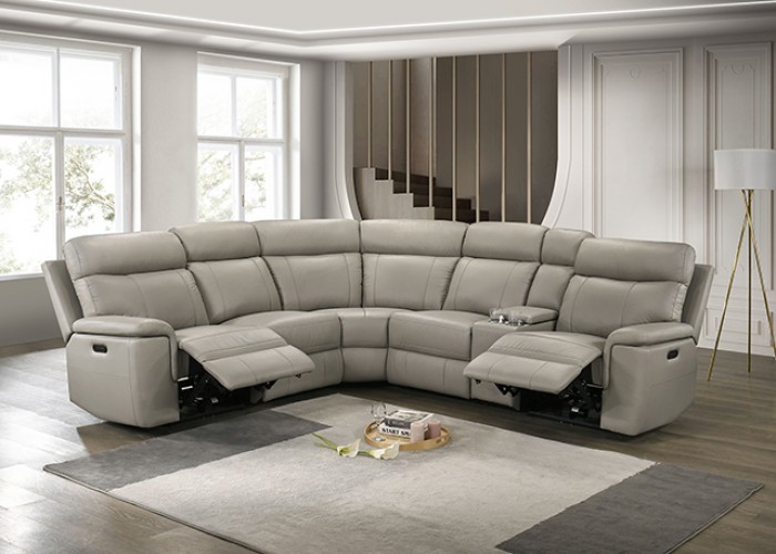 Oliverus Taupe Leather Match Power Sectional FM69009TP-SECT-PM by Furniture of America