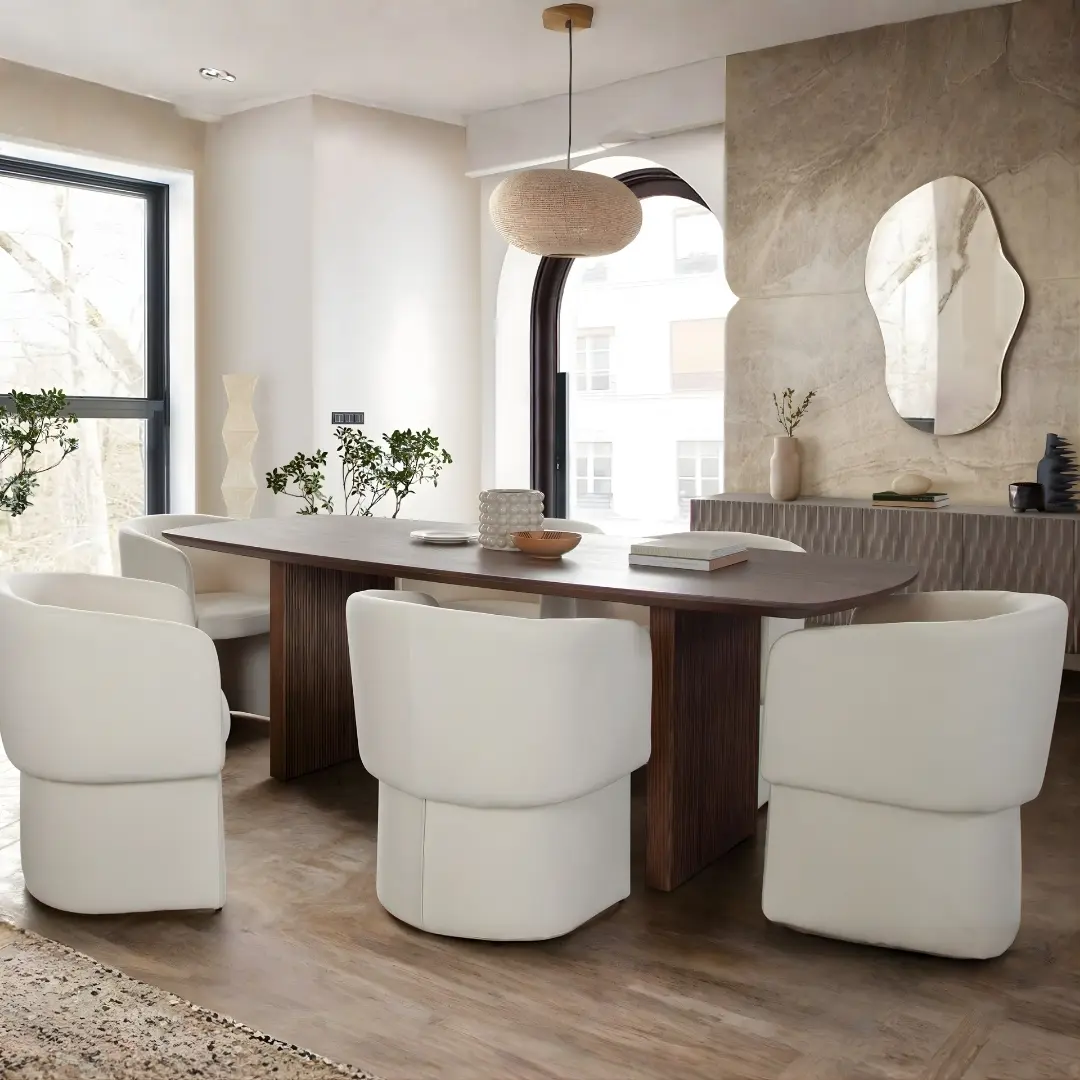 The Tess Dining Chair Contemporary is available in two sophisticated upholstery finishes, each designed to complement different interior styles.
