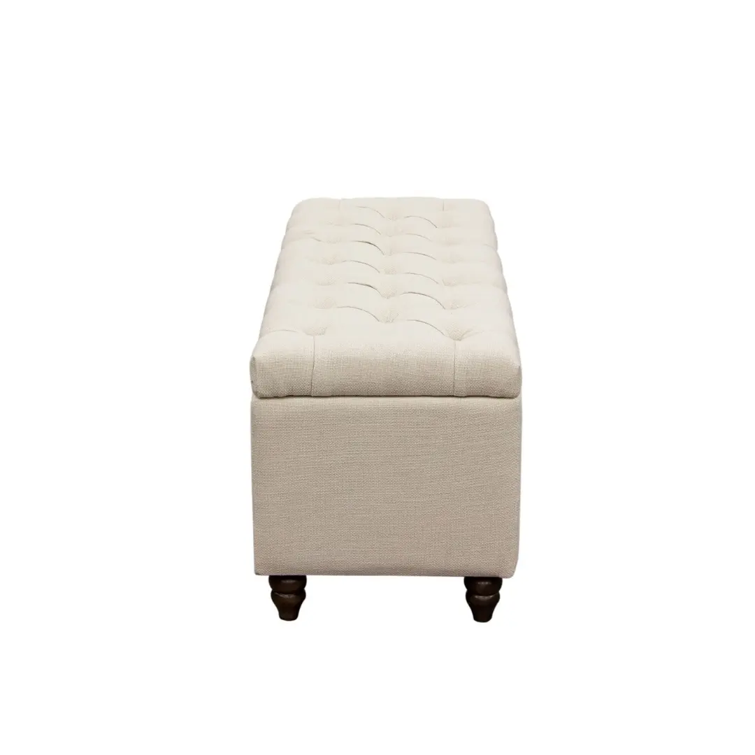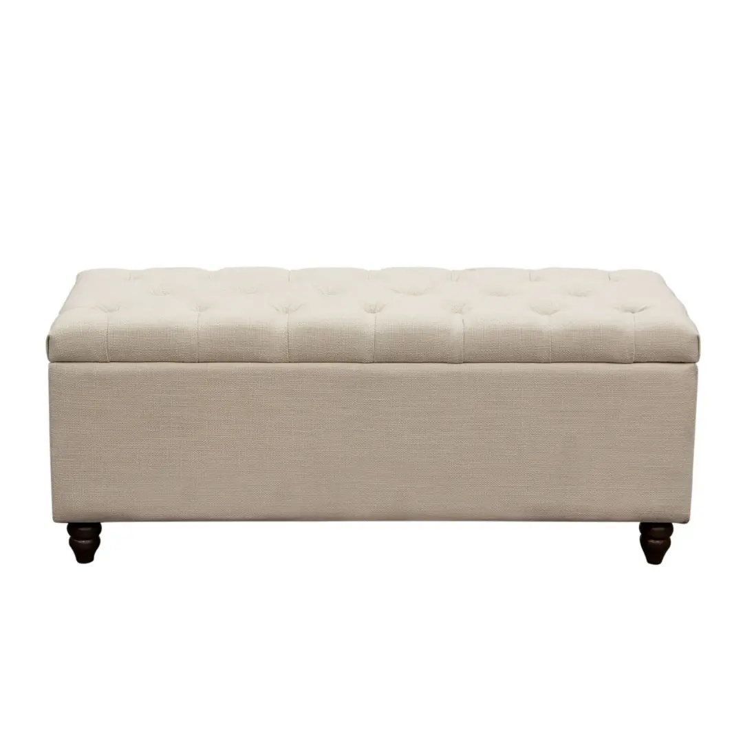 This versatile storage trunk is crafted with a timeless tufted upholstery design that brings texture and visual interest to any room. Its neutral sand color pairs easily with modern, contemporary, or classic bedroom interiors.