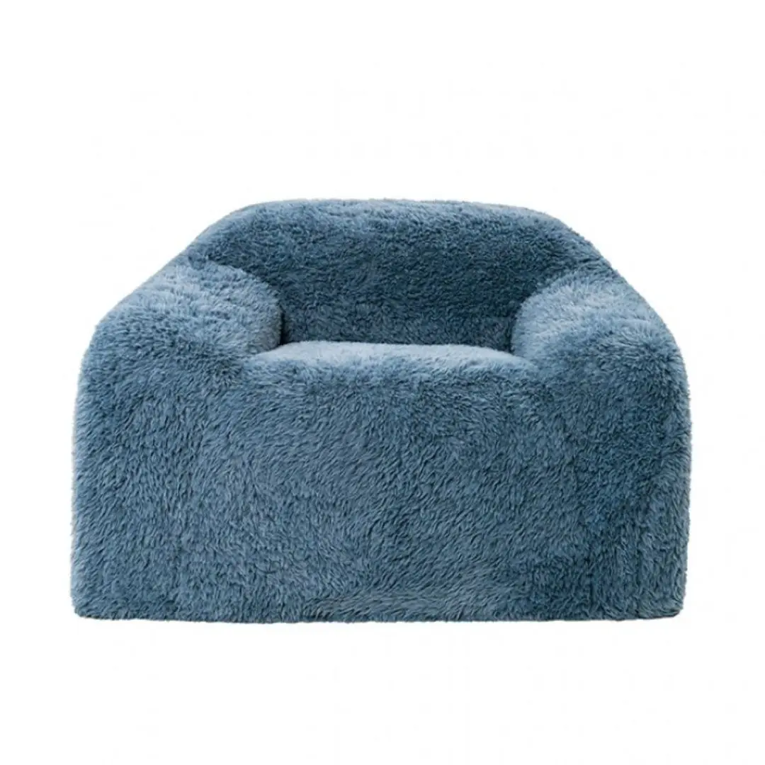 The defining feature of this blue accent chair is its plush, long-pile faux fur. The shaggy texture not only enhances the chair’s aesthetic appeal but also provides an incredibly soft, tactile experience.