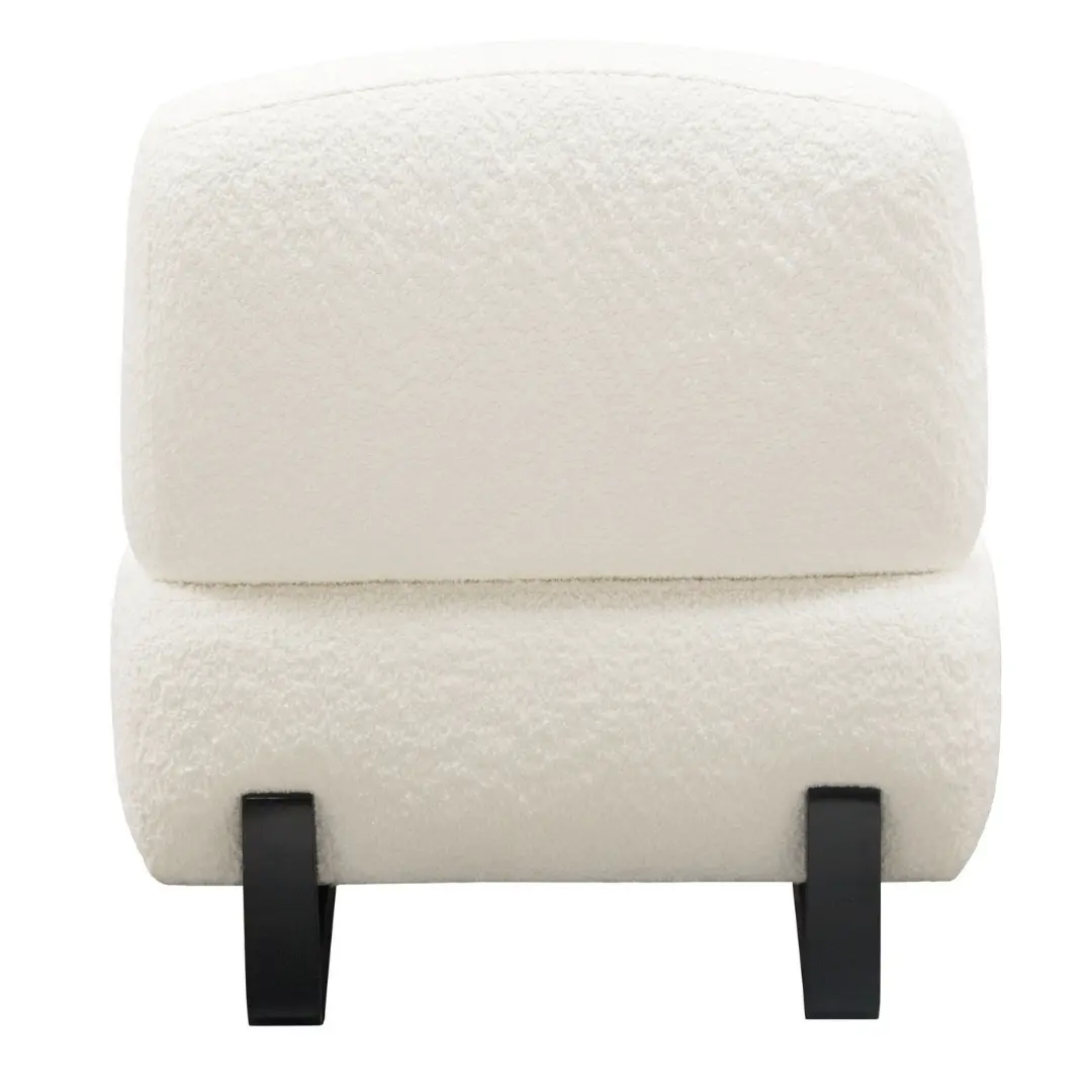 The white upholstered chair from the elegant Vesper Collection by Diamond Sofa blends contemporary sophistication with cozy comfort. Designed with smooth, sensuous curves and a low-profile silhouette, this armless chair delivers both striking visual appeal and relaxing seating. Upholstered in luxurious faux white shearling and supported by bold black wood angular legs, the chair creates a crisp contrast that instantly elevates modern interiors.