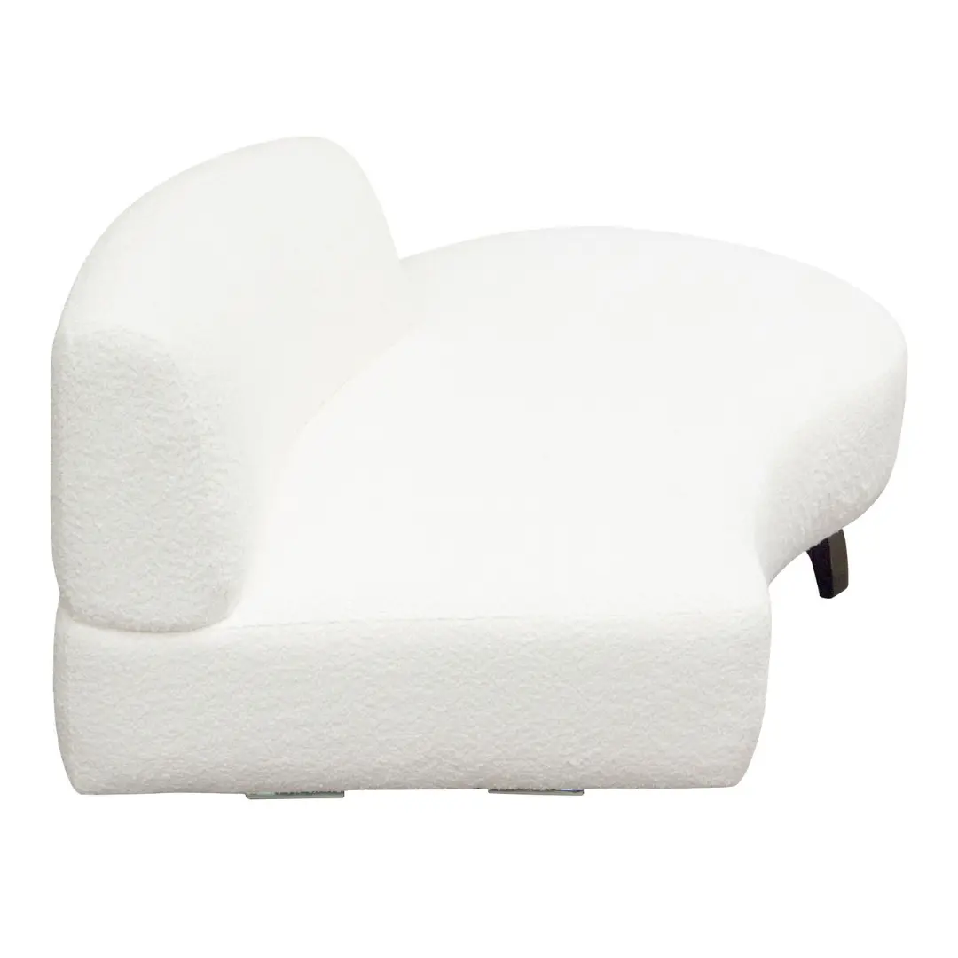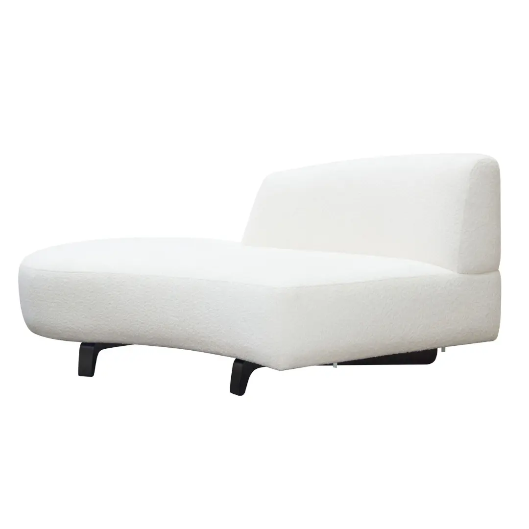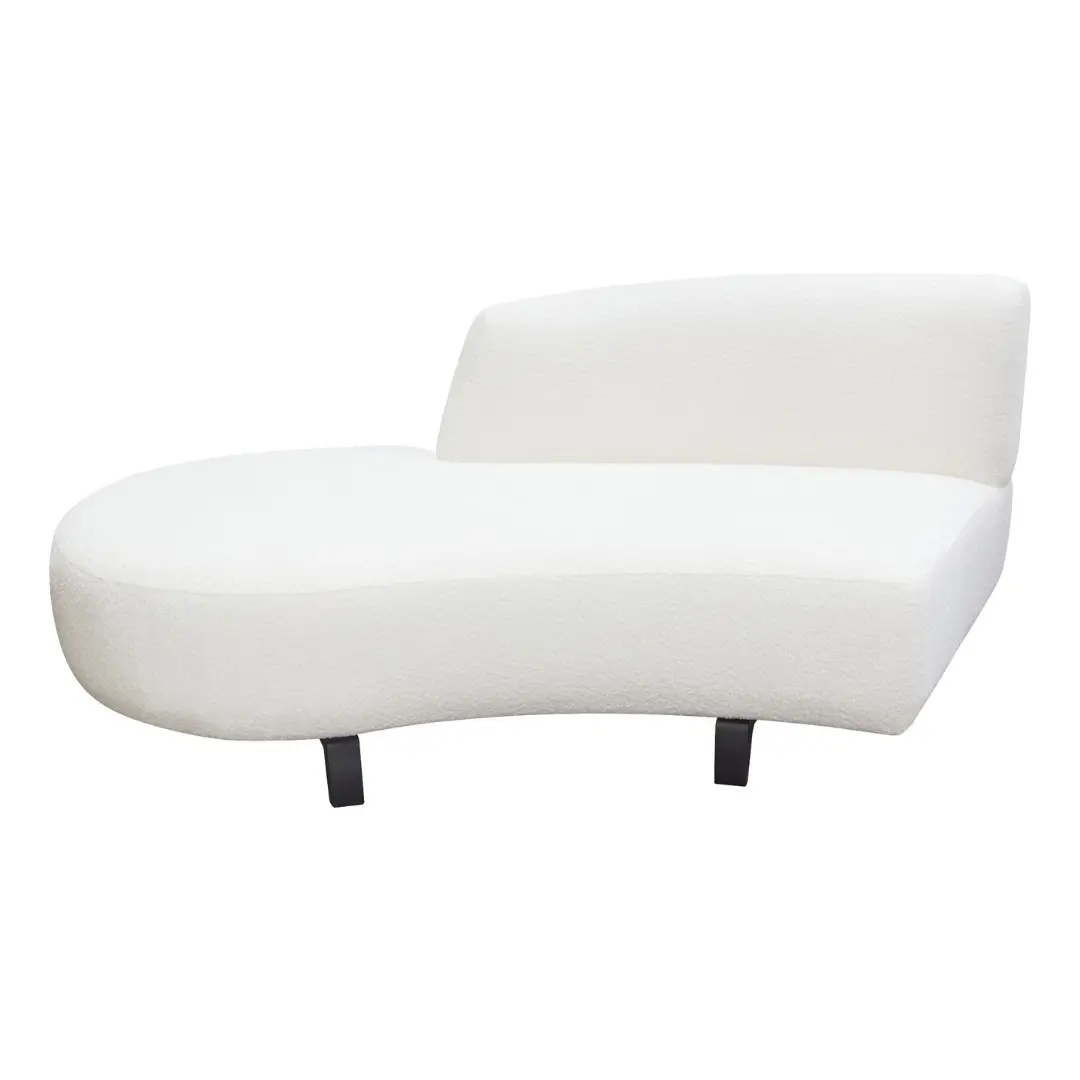 The white chaise lounge from the Vesper Curved Modular Collection by Diamond Sofa blends modern elegance with everyday comfort. Designed with graceful curves and a low-profile silhouette, this statement seating piece instantly elevates any living room, lounge area, or contemporary interior. Upholstered in plush white faux shearling fabric and supported by sleek black wood legs, it delivers the perfect balance of cozy texture and bold contrast.