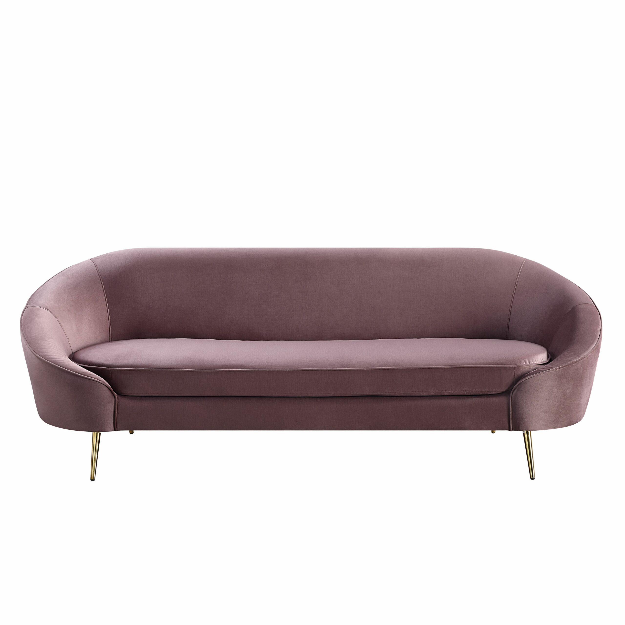 The Abey living room collection is not only visually striking, but it also offers plenty of comfort. The curved silhouette creates a glam appearance. Upholstered in a luxurious pink velvet fabric to add dimension to the pieces. The gold metal tapered legs add another pop color and emphasize the glamorous design. This set provides enough seating for all your guests.