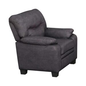 Find your favorite lounging spot with this microfiber armchair from the Meagan collection. Perfect in a living room group or your special reading nook, this chair offers plush comfort over a kiln-dried frame. The specially coated microfiber is treated to give the look and feel of real leather for a luxurious high end feel. Smooth charcoal grey color is a modern neutral, complementing most any color palette. The smaller scale of this collection makes this chair a versatile addition to any space.