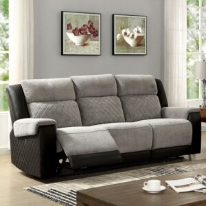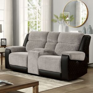 vAdd a pop of neutral color to your most visited room in the house–the living room! This chair is a two-tone masterpiece in more ways than one. The black and gray colors correspond to two different materials: the black leatherette covers most of the main frame, while readily exposed sections are upholstered in soft gray fabric. Handsome diamond stitching adds luxury. The comfort of a power recliner and easy-to-reach USB outlets make this a must have for any avid homebody.